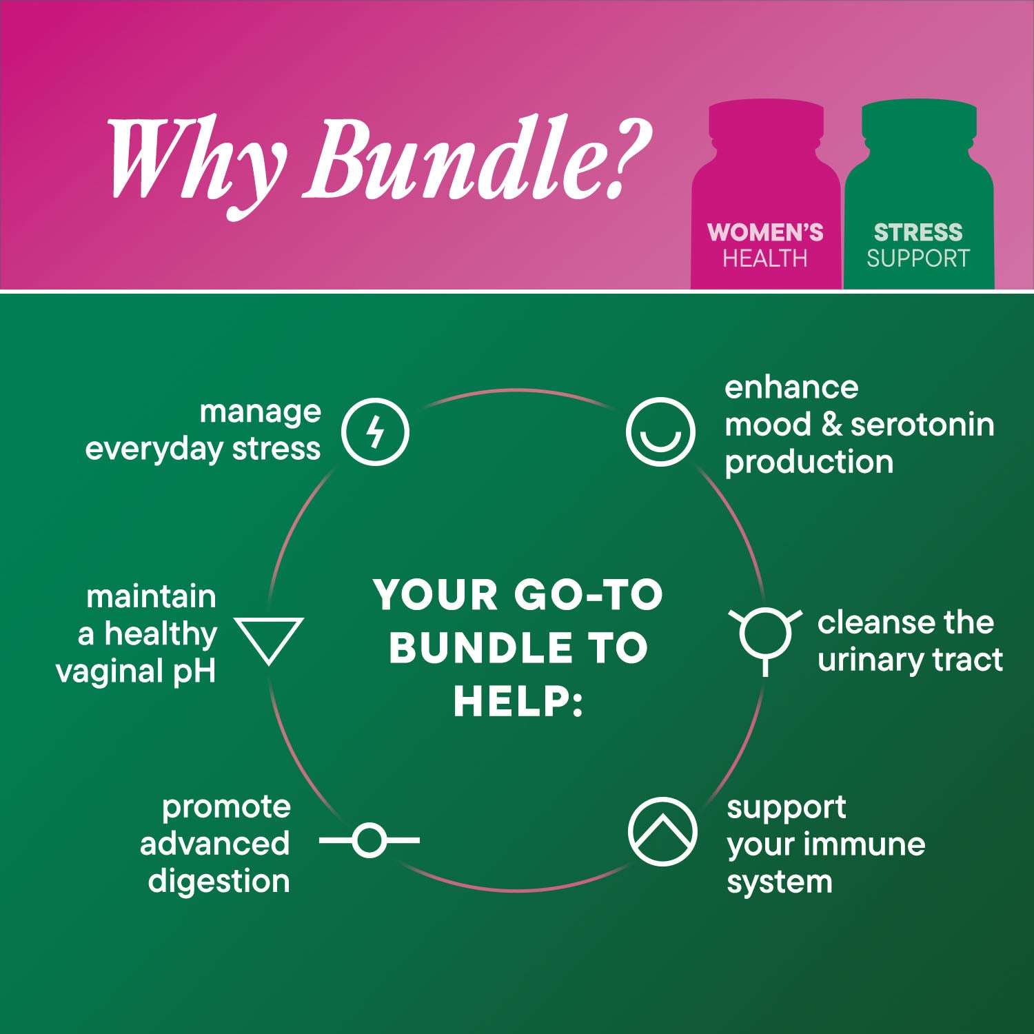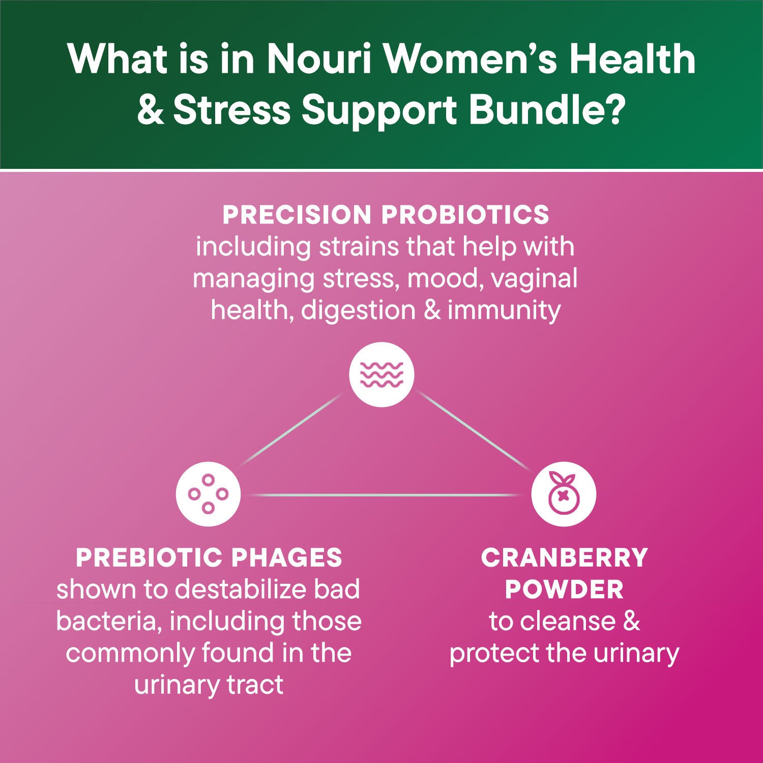 Daily Nouri Stress Probiotic + Women's Probiotic Bundle protect against everyday stress, urinary tract issues, and vaginal discomfort.