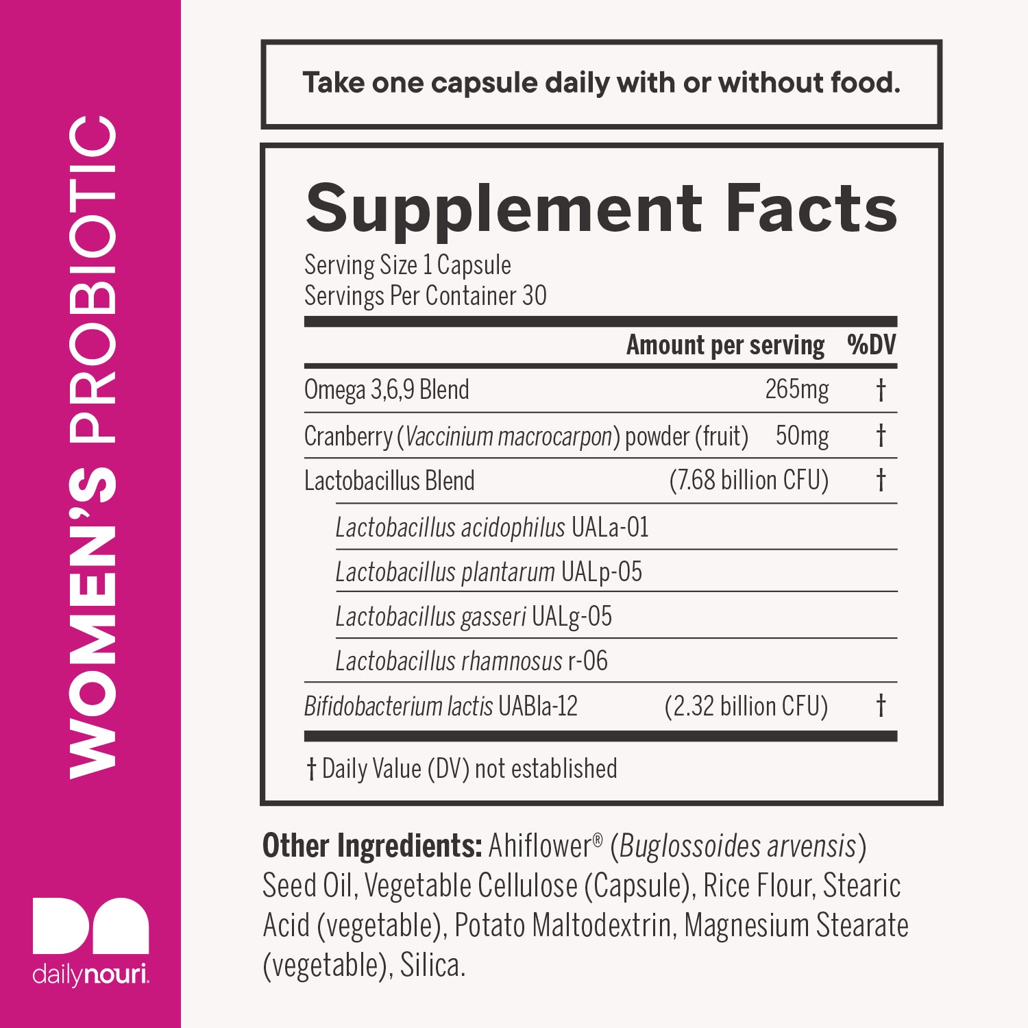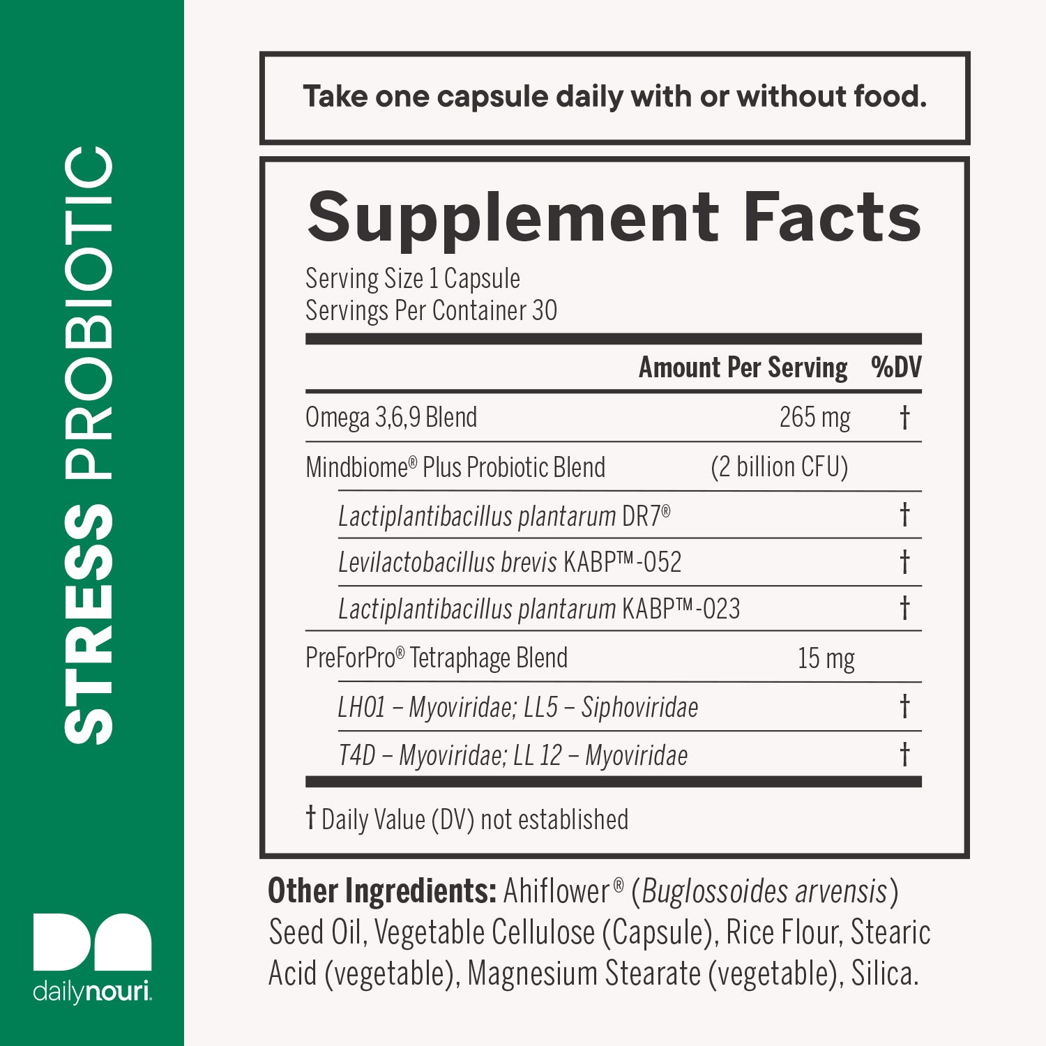 Daily Nouri Stress Probiotic protects the body from everyday stress by promoting positive hormone production such as serotonin. Daily Nouri Women’s Probiotic offers 4-in-1 vaginal, urinary, digestive, and immune support. Both probiotics also aid in digestion and help to reduce digestive upset caused by stress.